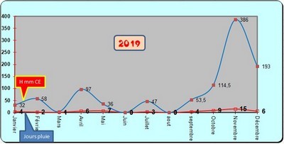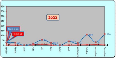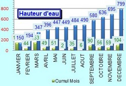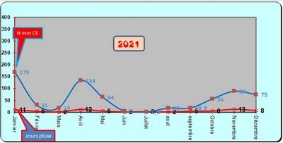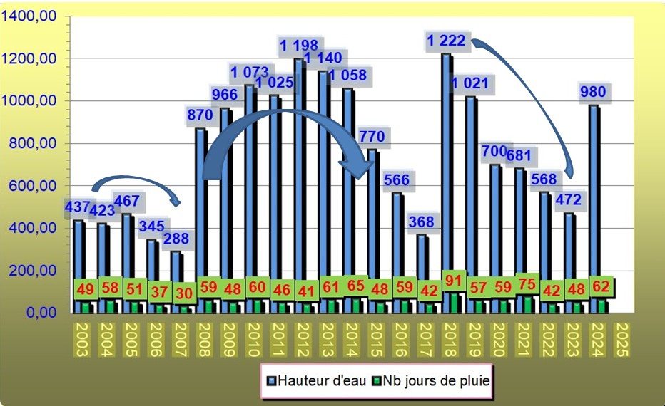 ** Ci-dessous la courbe de l'évolution (hauteurs et jours de pluie)