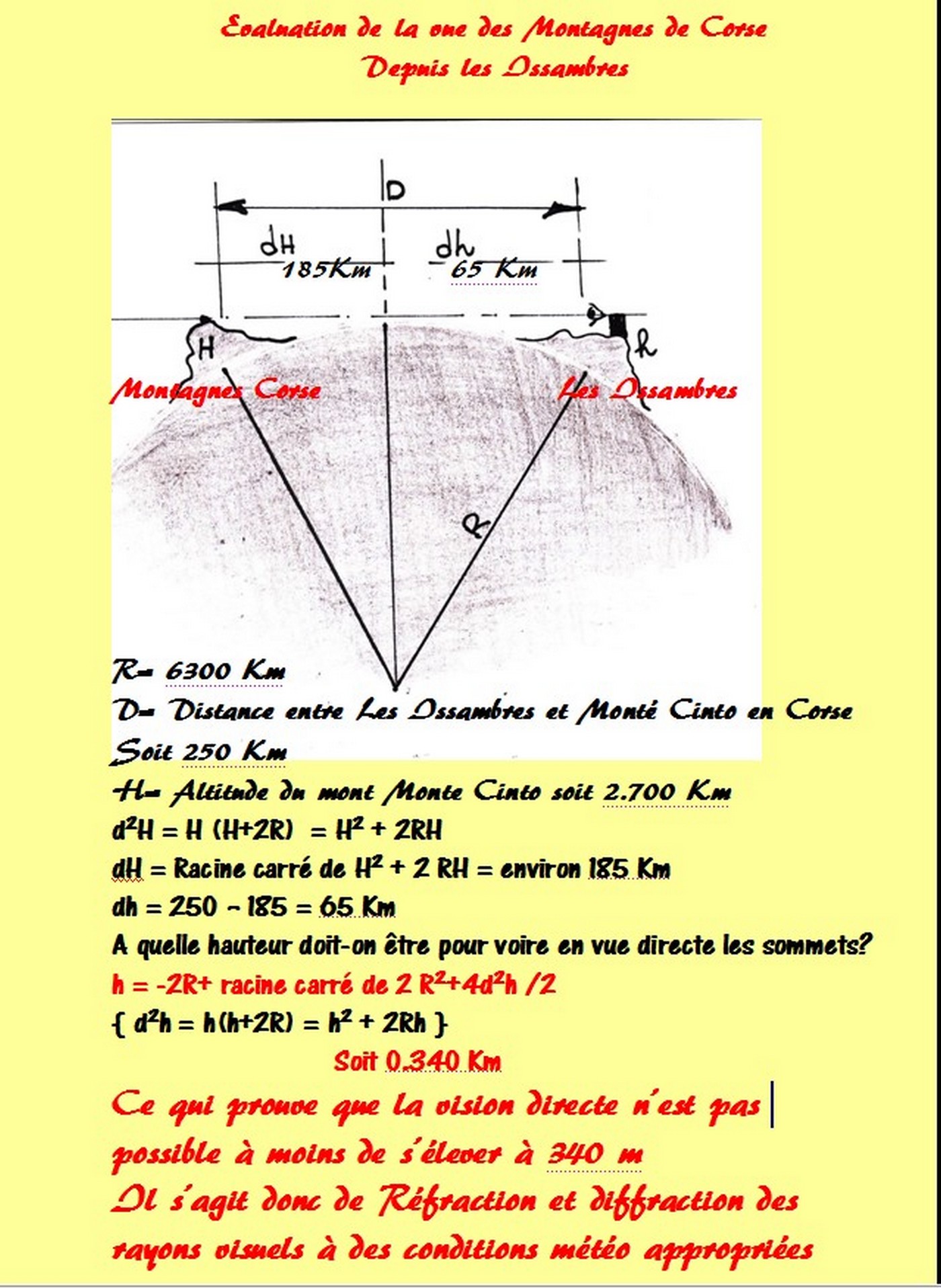 La Corse ne peut donc pas être vue en conditions atmosphériques normales, son point culminant étant le