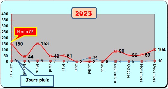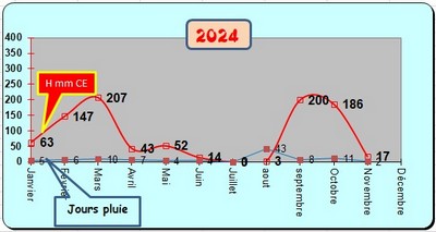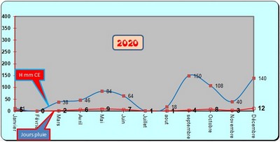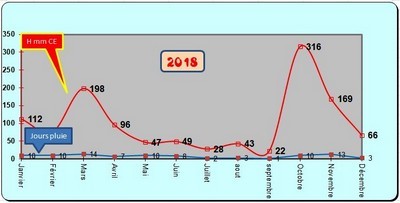 ** Ci-dessous la courbe de l'évolution (hauteurs et jours de pluie)