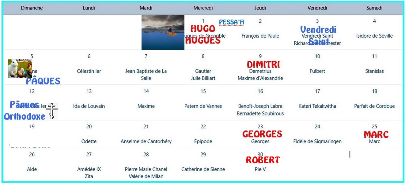 et ce sera les Pâques catholique et juive ""Pessa'h"