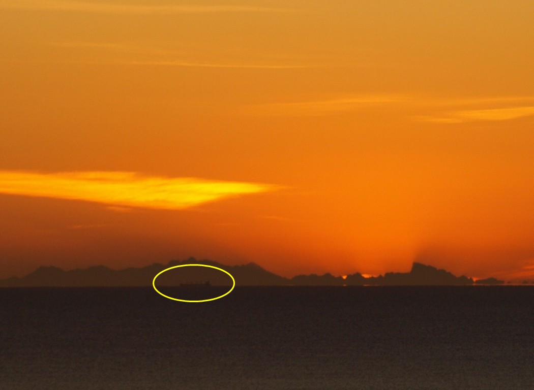 L'image ci-dessous montrent le phénomème un autre jour, en gros plan avec un bateau à l'horizon: