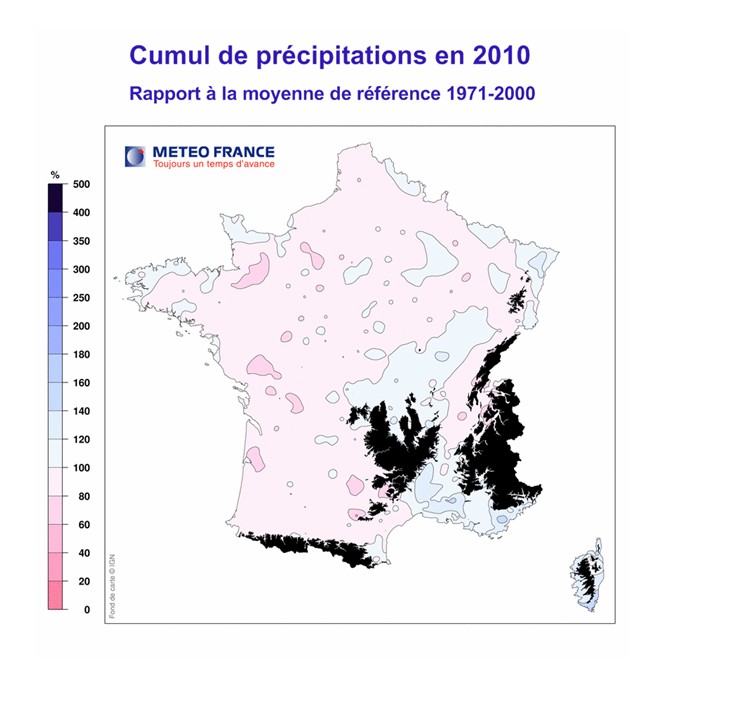1971-2000, l'année 2010 se positionne en France métropolitaine comme la plus fraîche de